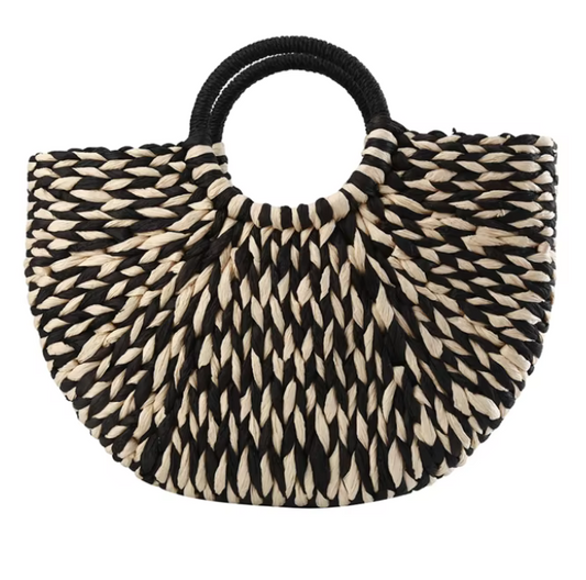 Women Woven Handbag Rattan Wicker Straw Half Round Bag Fashion