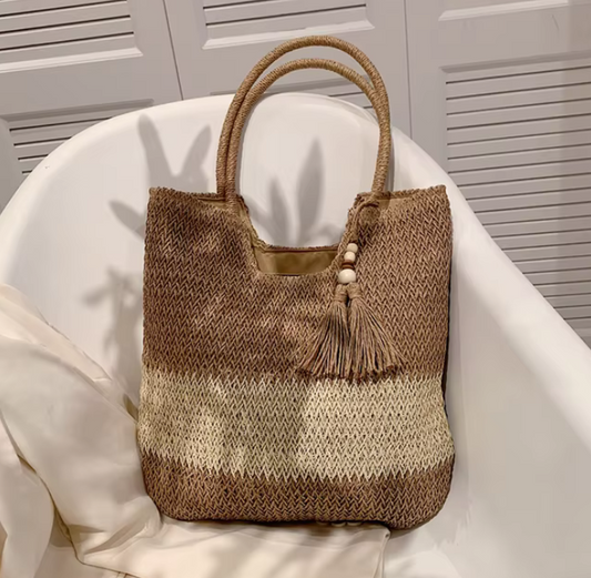 Straw Beach Bag Summer Woven Tote Bag with Tassels Large Shoulder Bag