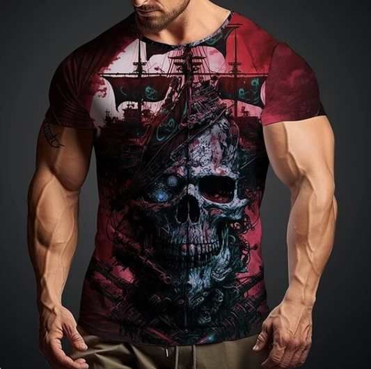 3D Skull Print Tshirt For Men Retro Fashion