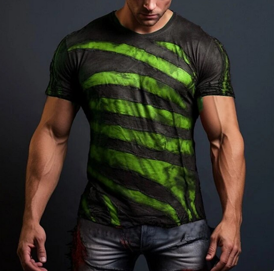 Summer Men Tshirt 3D Striped Print Short Sleeve
