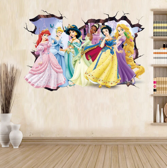 Cartoon Rapunzel Belle Snow White Princess Castle Wall Stickers