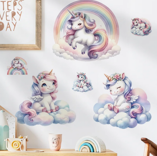 Watercolor Rainbow Unicorn Wall Stickers For Kids Room Baby