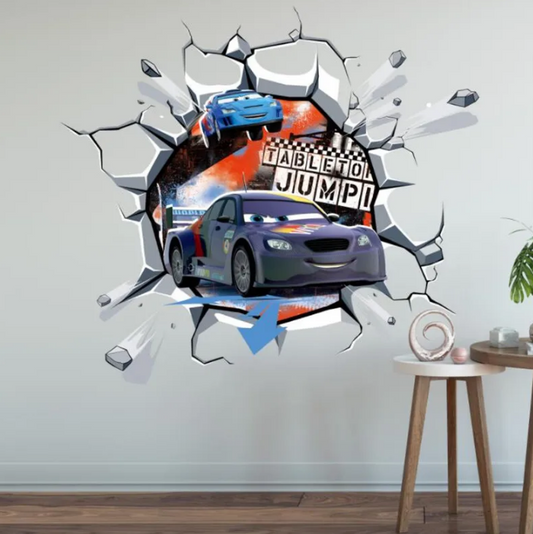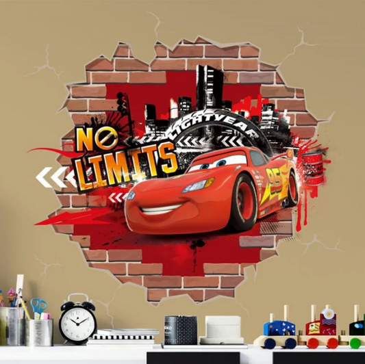 3D Brokenwall Lightning McQueen Cartoom Cars Wall Decor Decals For Kid