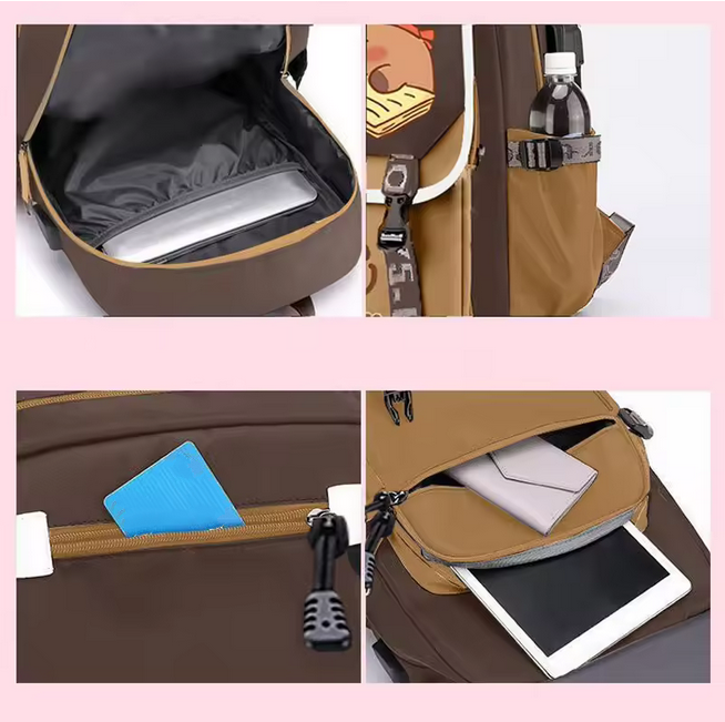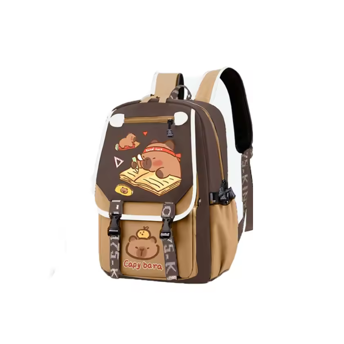 - Add a touch of adorable charm to your child’s school days with this Cute Capybara Kids Backpack. Designed in a stylish khaki color and featuring an irresistibly cute capybara print, this backpack is perfect for kids and teens who love unique, animal-themed accessories.