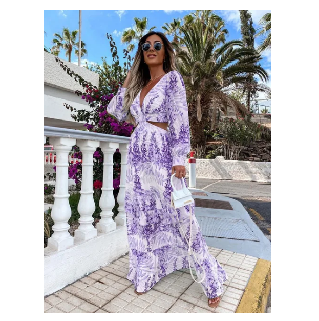 Dress Cross Border Fashion Long V neck Long Sleeve Style