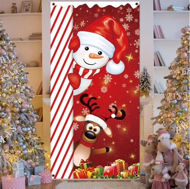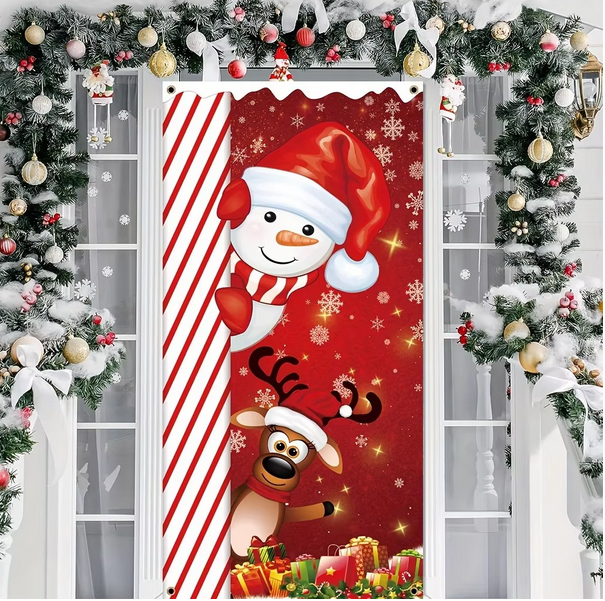 Merry Christmas Door Cover Decoration Polyester Christmas Snowman