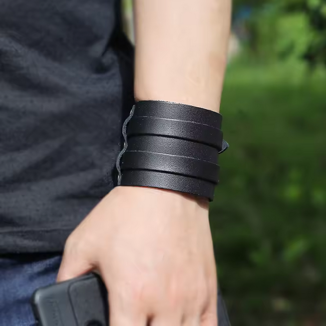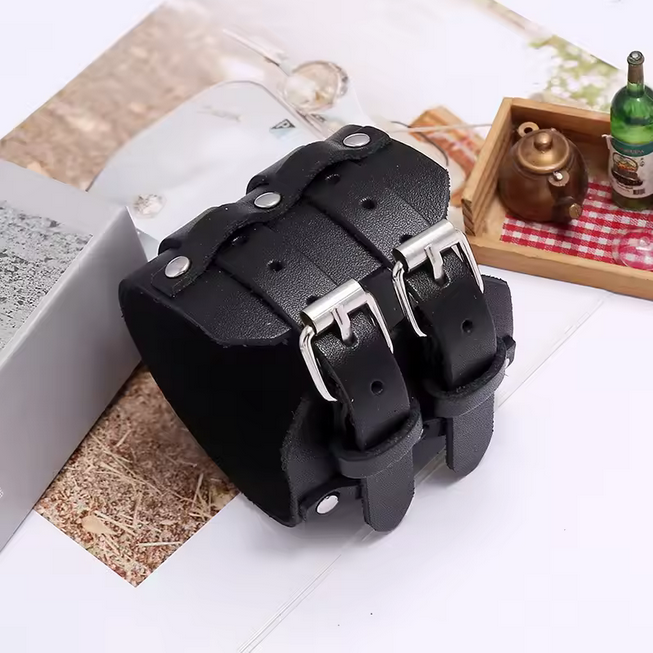 - Make a bold statement with this Men’s Punk Double Layer Leather Bracelet, the perfect accessory for those who live with style and attitude. This bracelet features a wide, double-layer design that blends rugged durability with a sleek, modern edge. Whether you’re hitting the road, attending a concert, or simply upgrading your everyday look, this bracelet captures the essence of freedom and individuality.